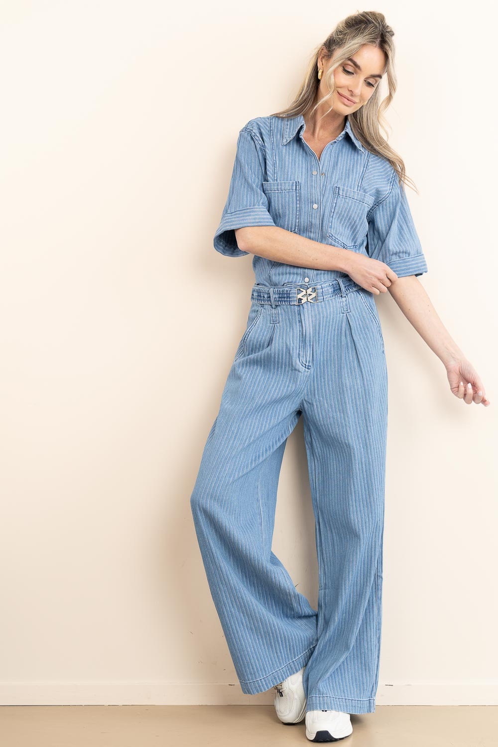 - Denim pants with pinestripes