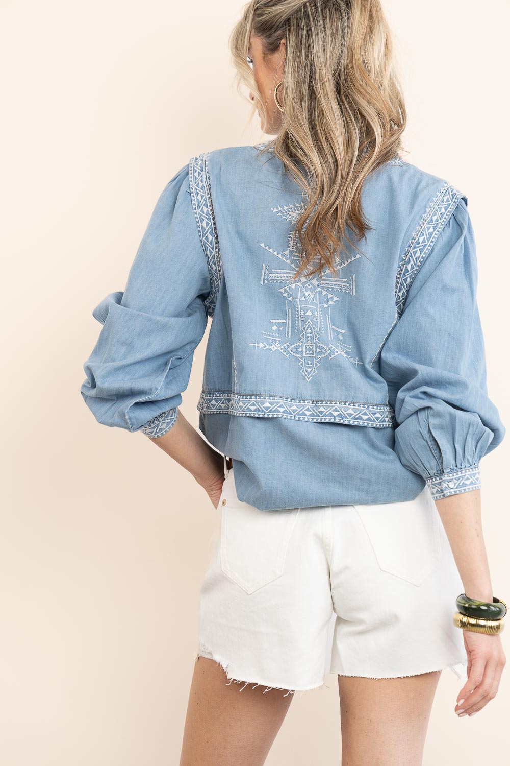 - Denim blouse with embroidery