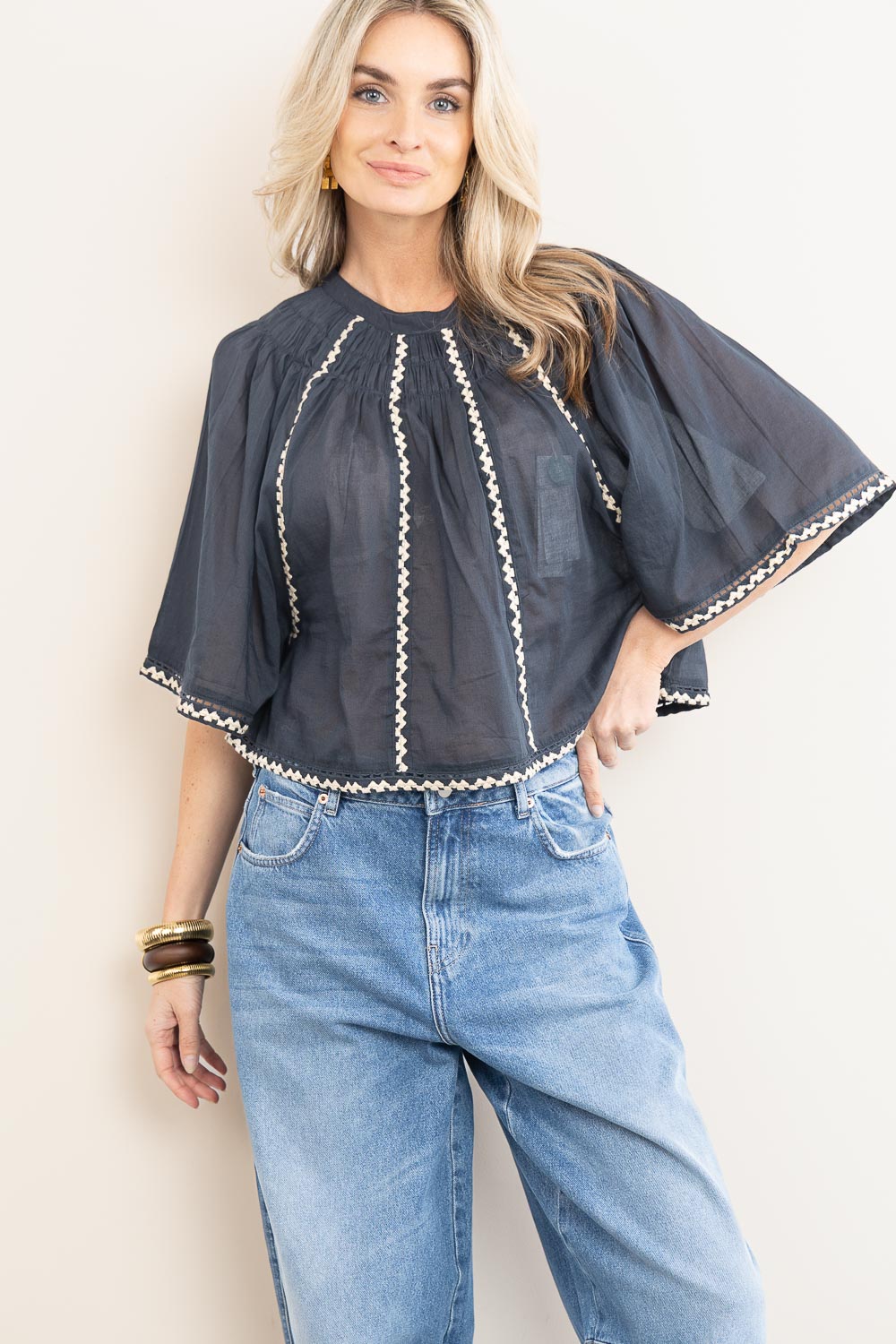 - Top with embroidery