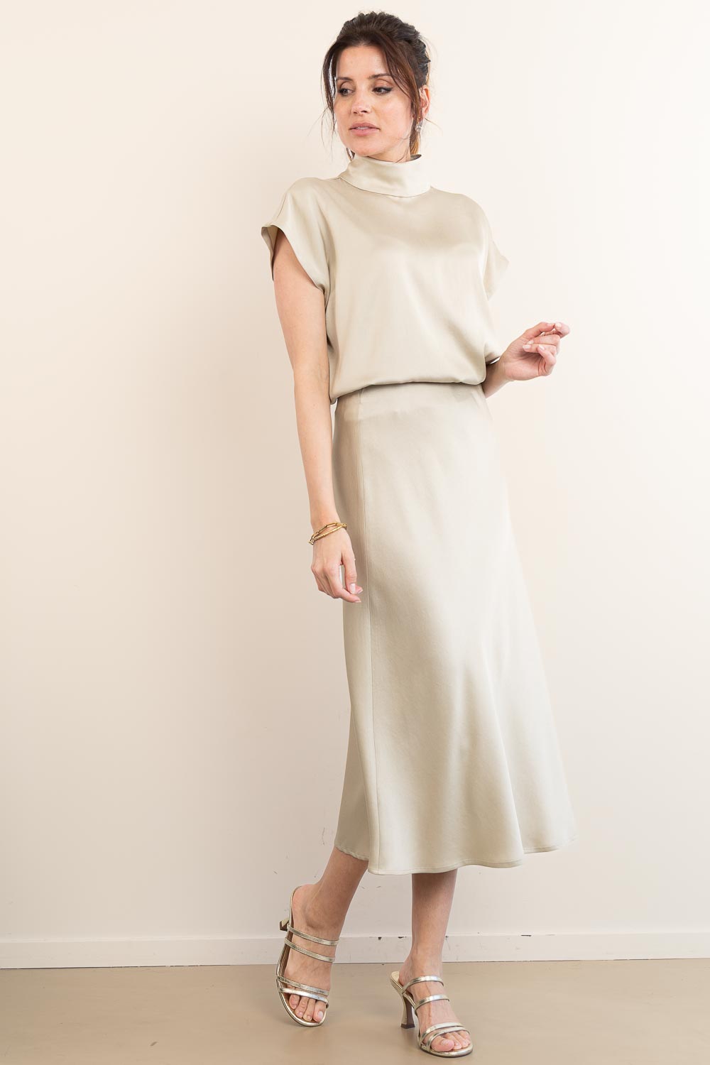 - Satin midi skirt