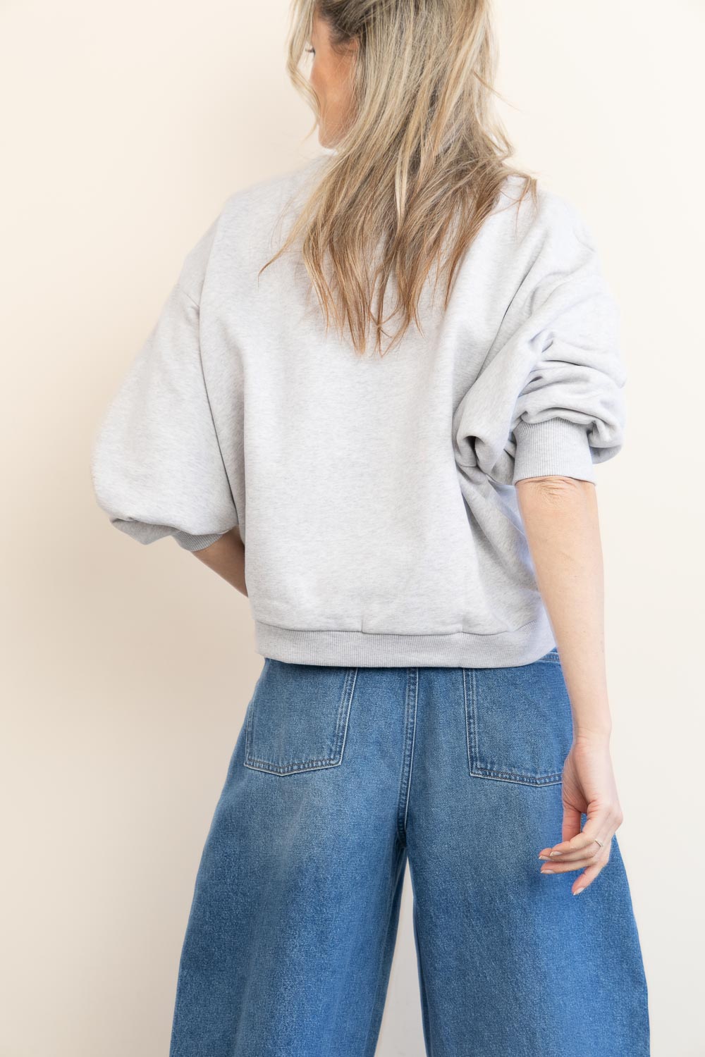 - Long lowered sleeves with cuffs