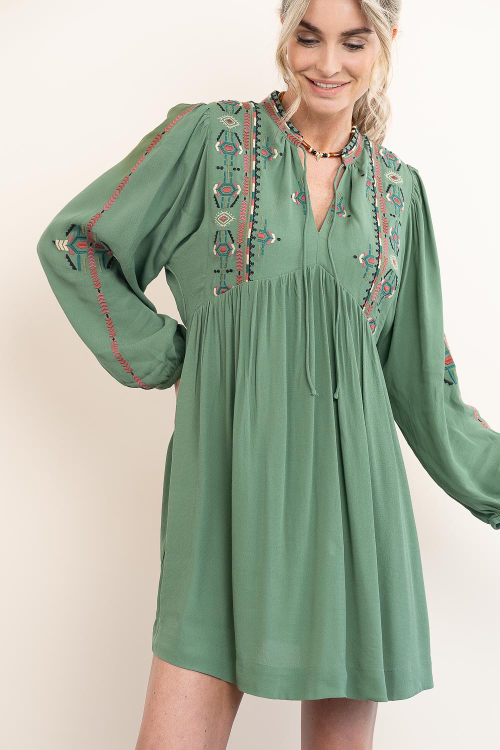 Dress with embroidery Telma | green