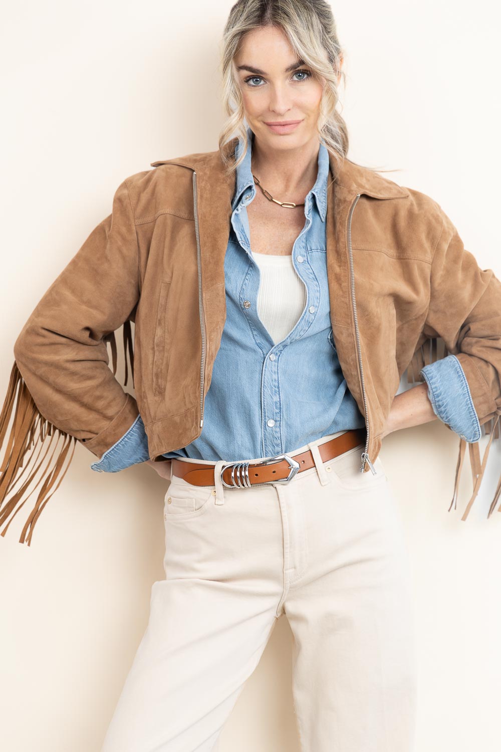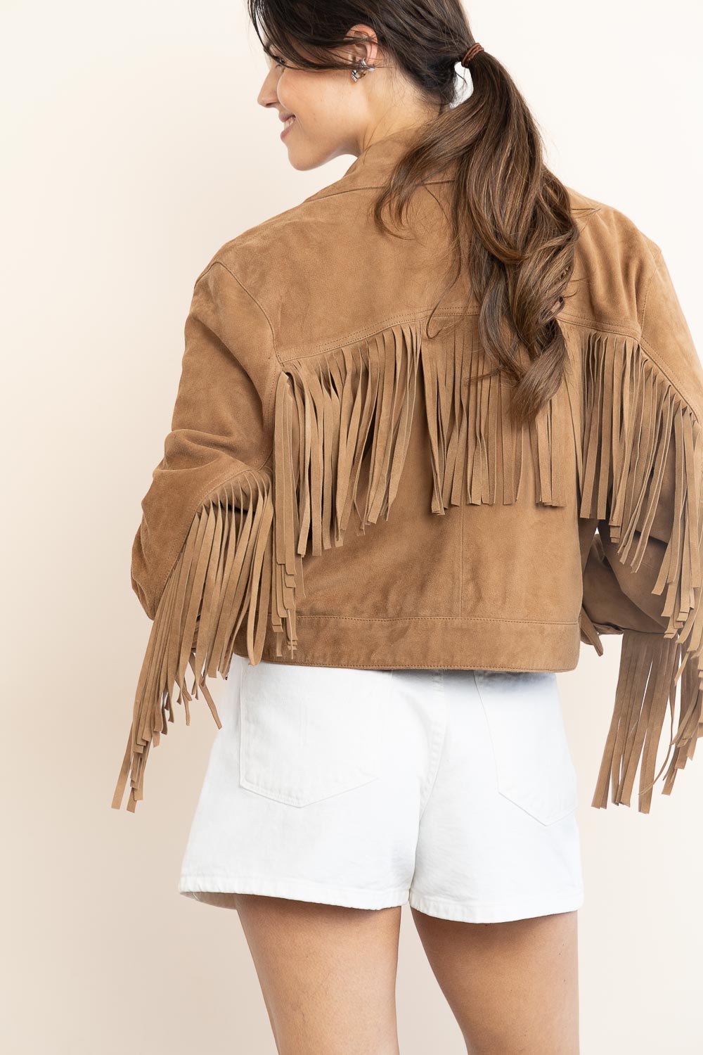 - Suede shoulder bag with fringes