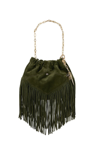 Suede shoulder bag with fringes Mini | dark green