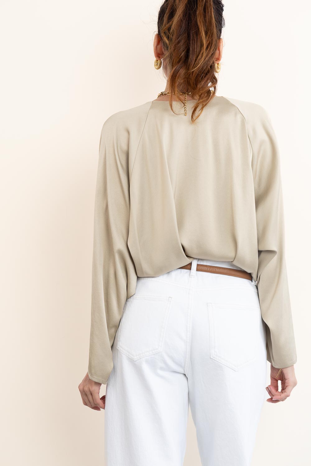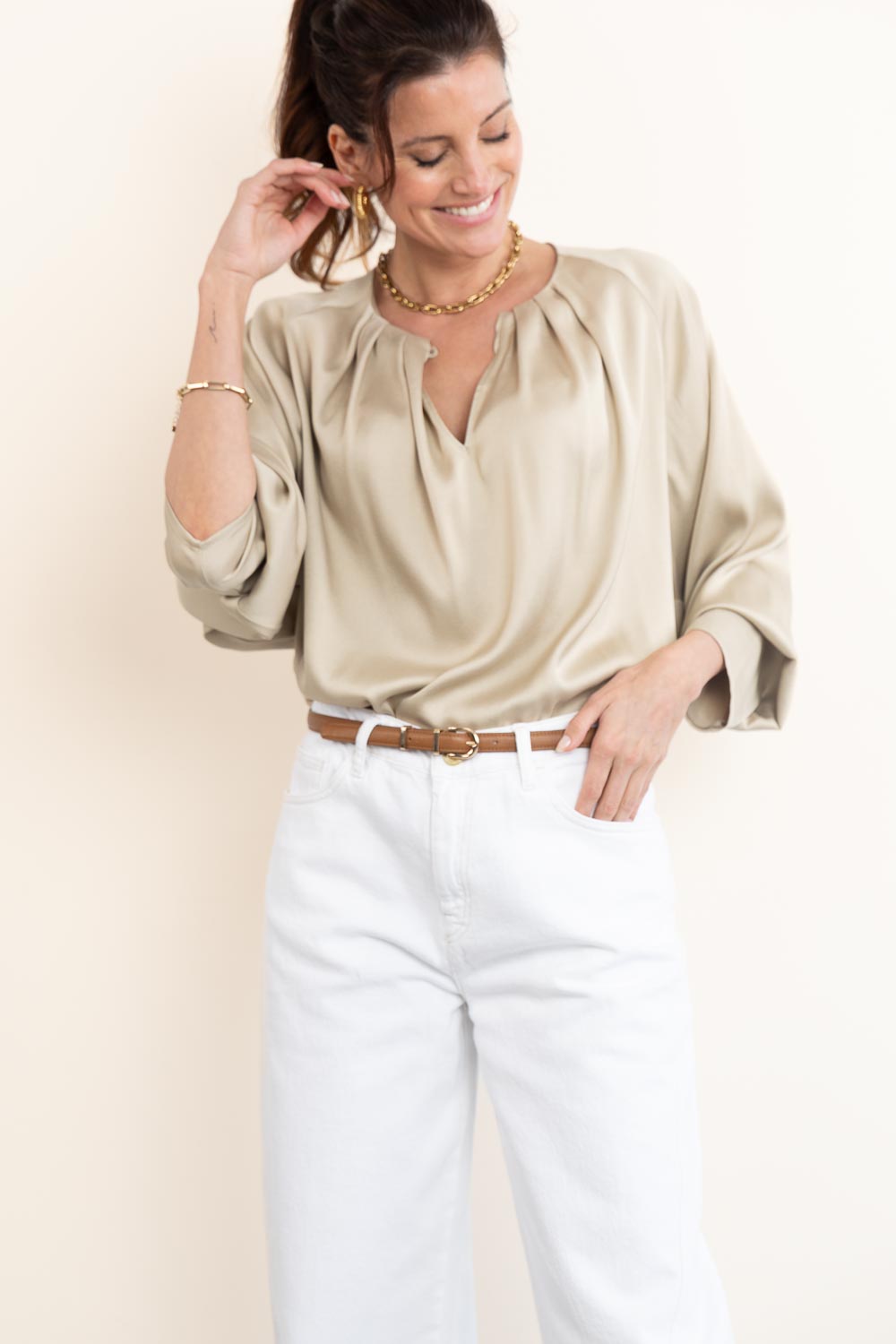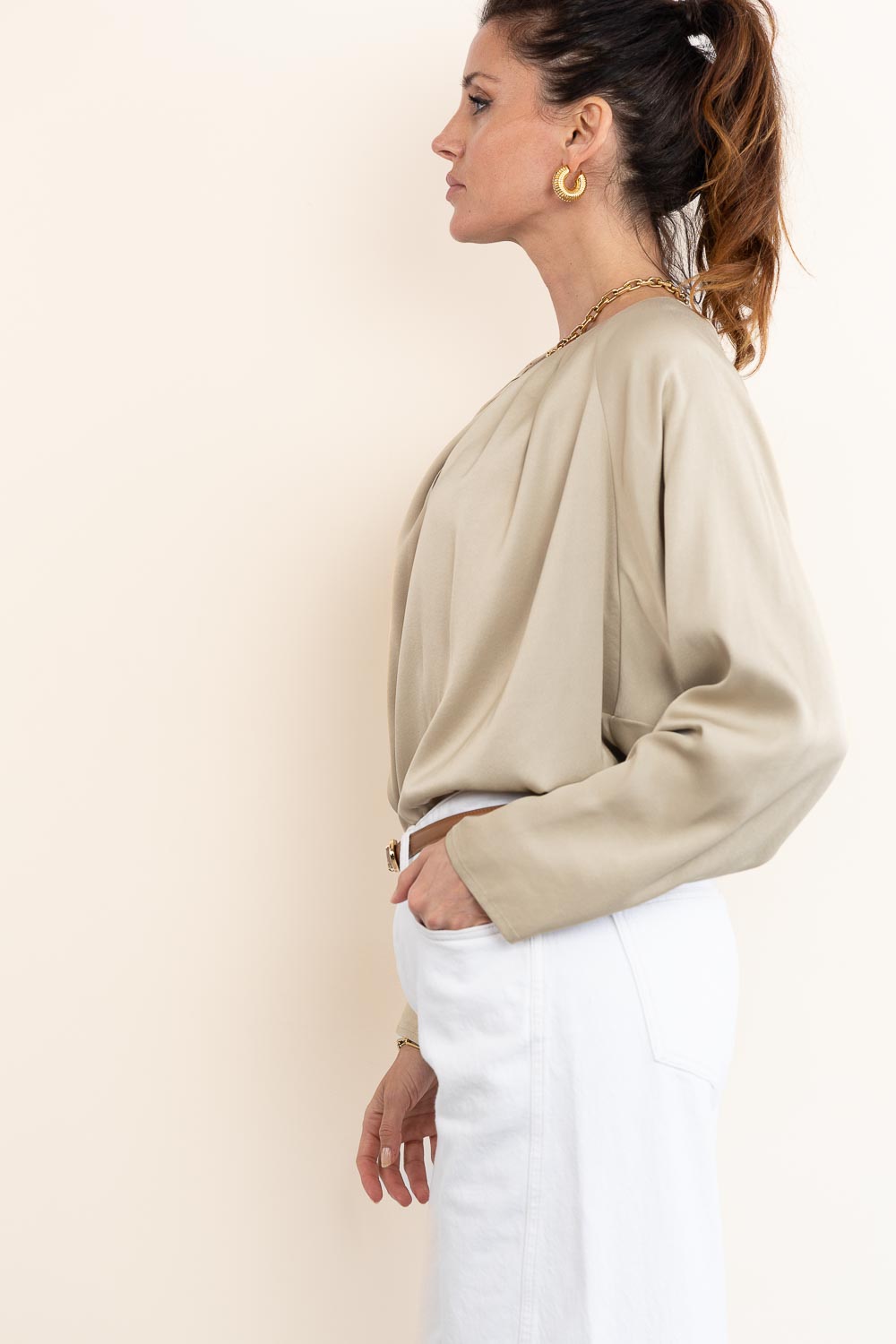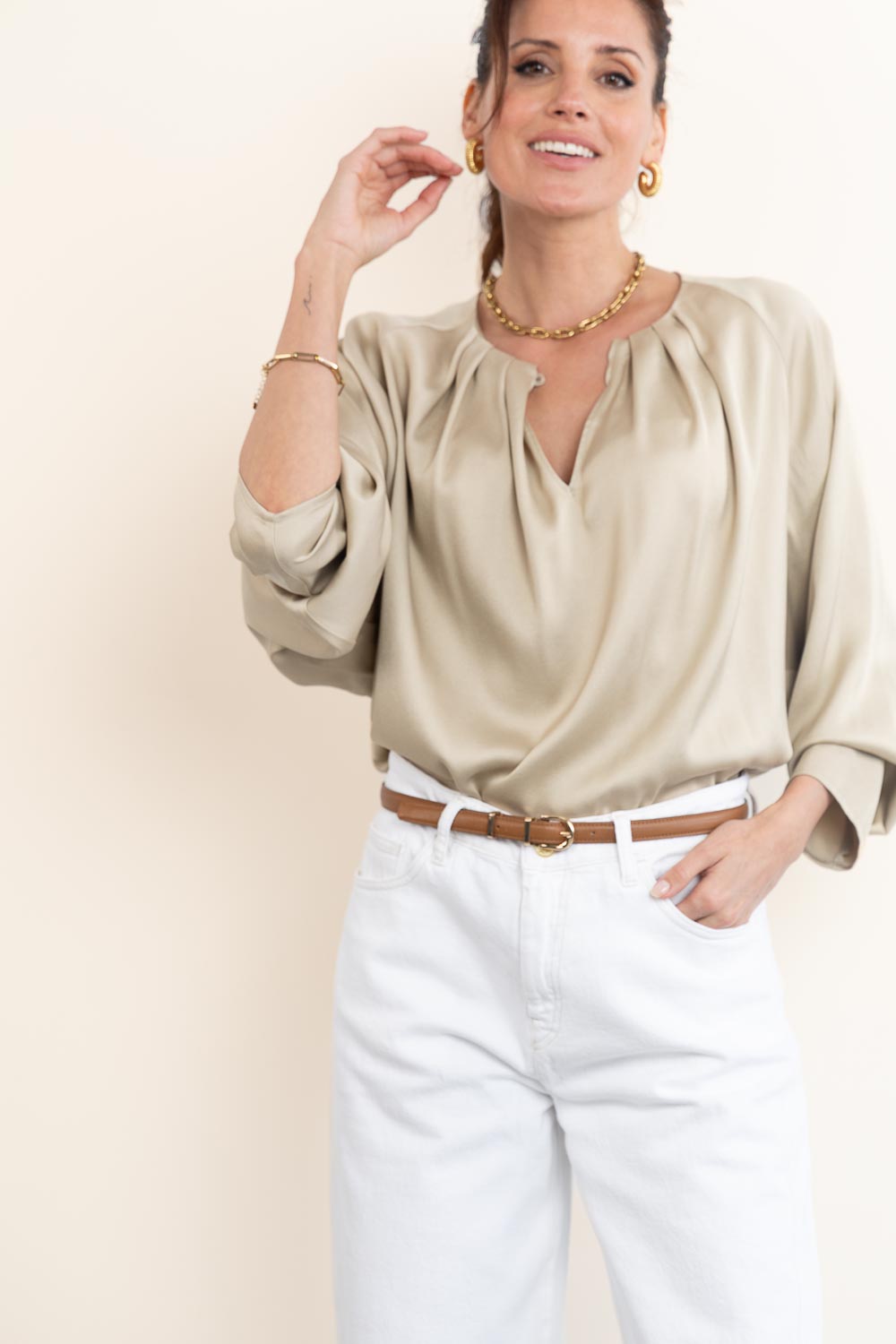 Satin top with pleats Harleen | beige