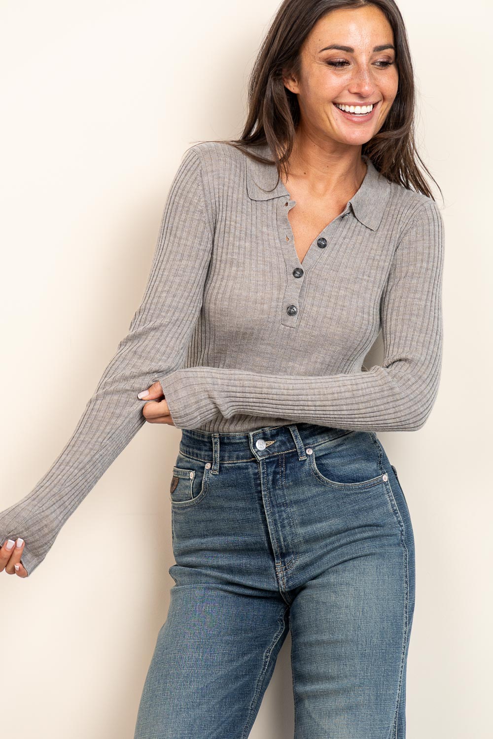 Merino woolen polo Cadee | taupe