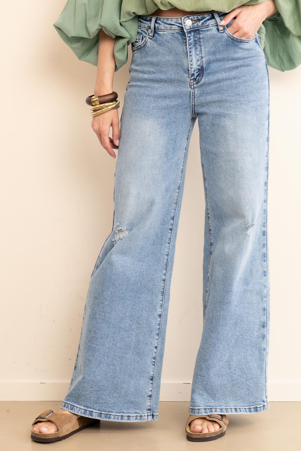 - Mid waist wide leg jeans