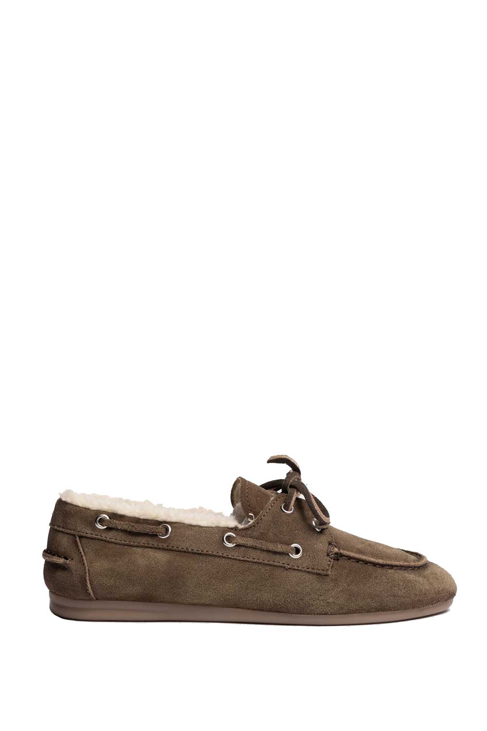- Suede boat loafers with fur